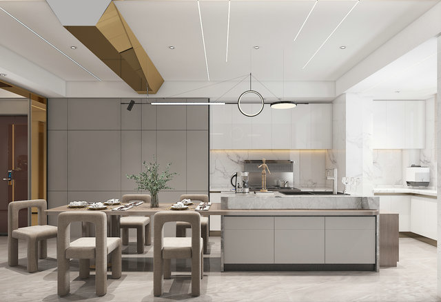 本案為好多年前的房子,業主也是新買的二手房。原室內裝修為簡約風格,頗為奢華。業主就喜歡年輕時尚的元素,喜歡金色,本案已是提煉出部分金色來點綴。原廚房于陽臺處,結構極其不實用,灶具和水槽空間狹小,故而使用餐廚一體化,原陽臺廚房作為物料收納區域,活了整個空間感覺和實用性。因為老房子,個人不喜歡裝修完看到梁,又要做出大宅該有的氣勢,故而做了這樣一個設計。所有裝飾皆為處理空間細節問題而生,無浮夸造型。本案為現代簡約風格,因樓層實在不高,故而用了分體空調。