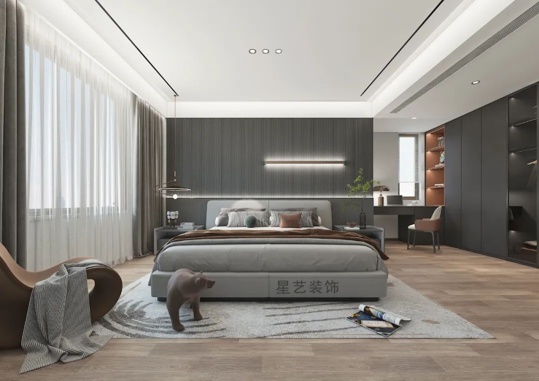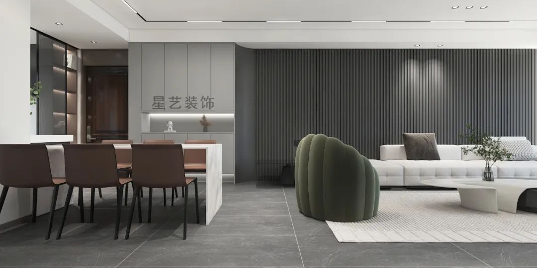 空間線條鮮明,輪廓簡潔明亮,消除一切多余的職能,謙卑且自由地承載著居住者平淡的生活影象,光影和內外景觀的處理,帶來靜謐清寂的空間感受。