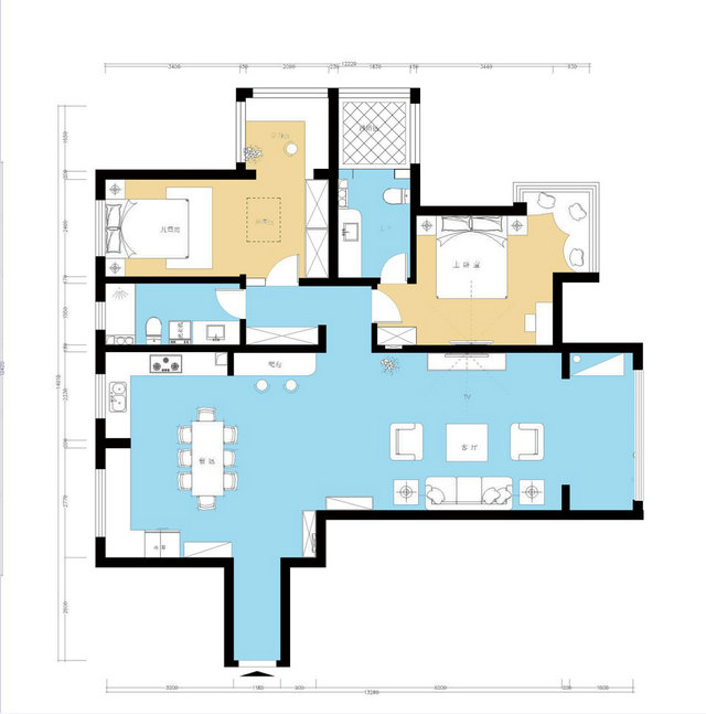 ?我把空間重新規劃格局,滿足客戶的空間需求。方案最大個亮點餐廚的空間打開了讓整個空間成為一體,客廳餐廳廚房擁有多兄弟的集會空間。在者是兒童臥室的空間設計通過 和拼空間視覺可以讓兒童臥室有很大的空間體驗。睡眠區,娛樂區,學習區,更加合理的規劃孩子的生活,主臥的飄窗區設計成一個休閑區讓臥室更加的有生活空間情趣,主衛生間的設計讓陽臺成為雙人淋浴區讓空間更加舒適。整個設計圍繞客戶喜歡的色調來做北歐風格,體現家的整體休閑的生活品質。