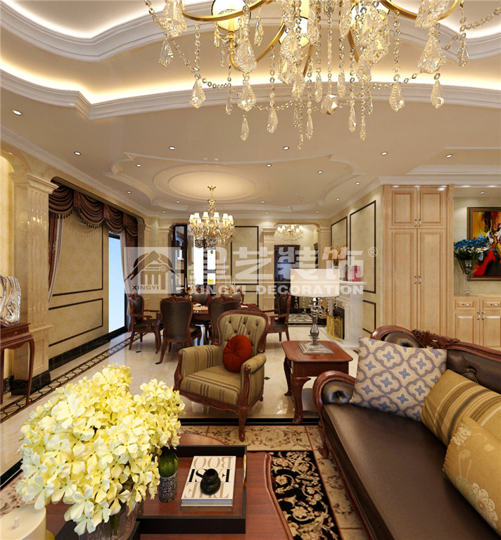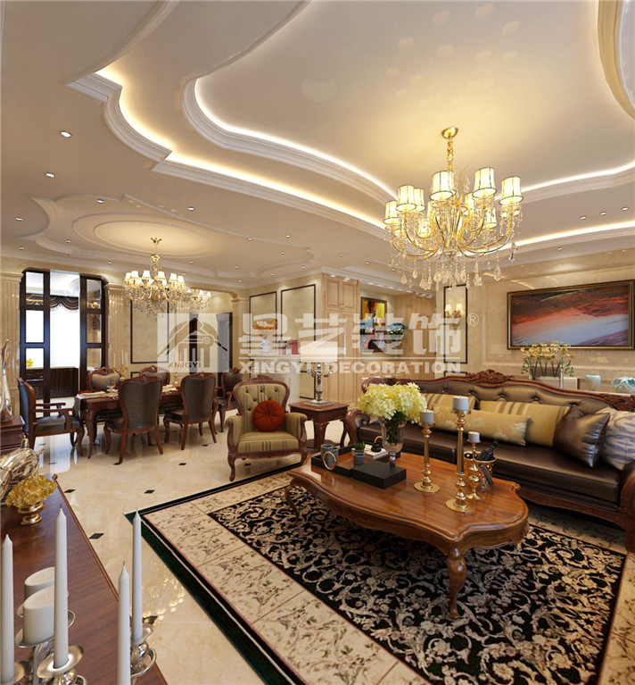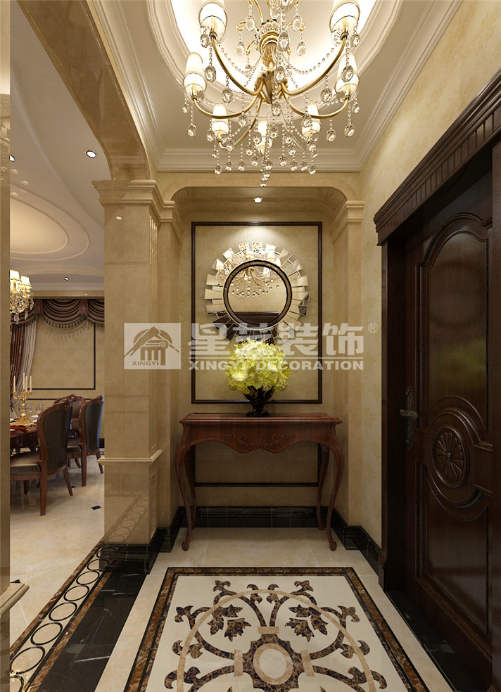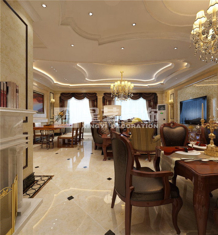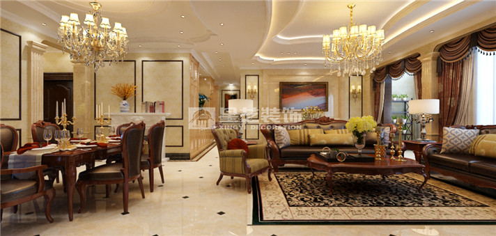 本案例是有秦皇島星藝裝飾設計總監魏歆位金屋半島業主量身定制,設計風格采用的歐式風格??臻g頂部運用流線型的設計師手法使空間增加了流動感,墻體多使用護墻板,強調了歐式風格的蘊含,加上局部羅馬柱的點綴更能體現歐式風格的年代感!