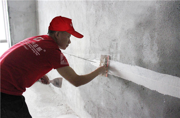 (2)處理好的墻面涂界面劑。目的:起到清理墻面污跡、加固原批蕩層的