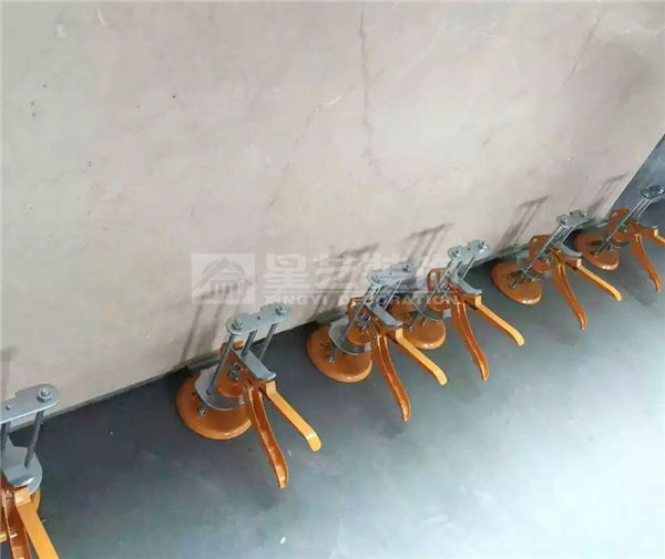 以每隔三排磚掛一條橫向水平控制線,橫向鋪貼并用水平尺測平整度。