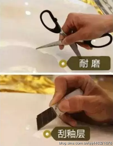我們只需拿起手中的利刀或鑰匙,往瓷磚表面刮,看看是否會把瓷磚的表面的釉層刮掉,如果連這樣的小小的刻劃也不能承受,質量可想而知。