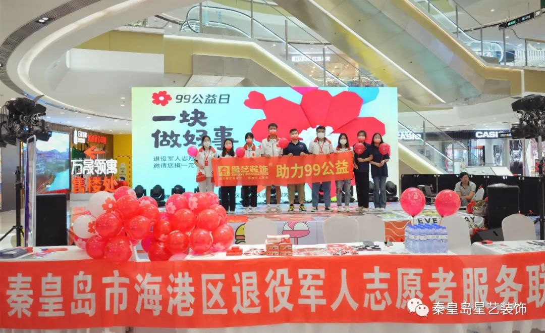 2022年9月7日上午十點,在第8個99公益日來臨之際,秦皇島星藝裝飾的志愿者們與秦皇島市海港區退役軍人志愿者服務聯合會在萬達廣場共同為《退役軍人關愛工程》公益項目募集捐款。